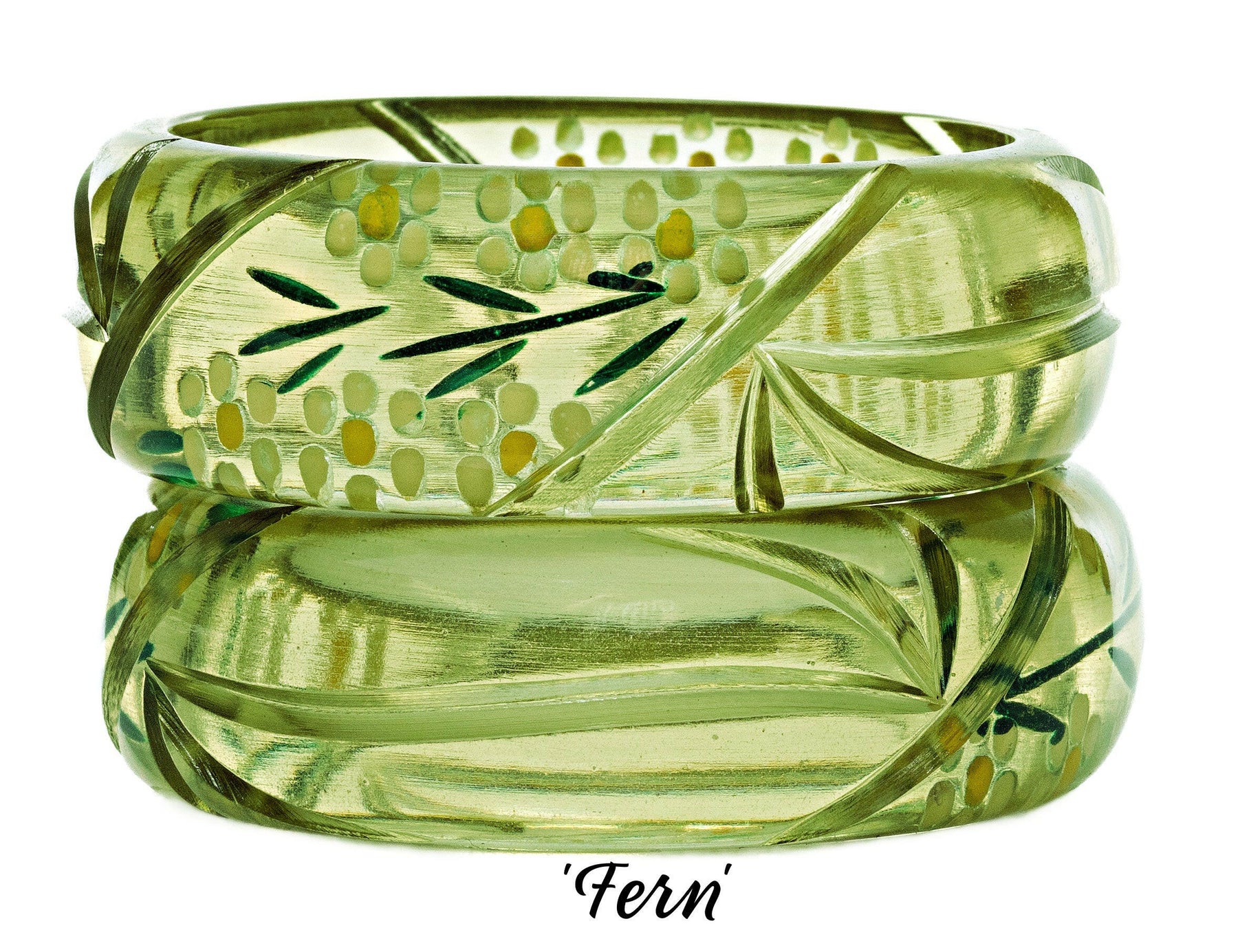 This lovely bracelet measures 1" wide and 1/4" thick so you'll feel that lovely, satisfying Bakelite-style weight on your arm.