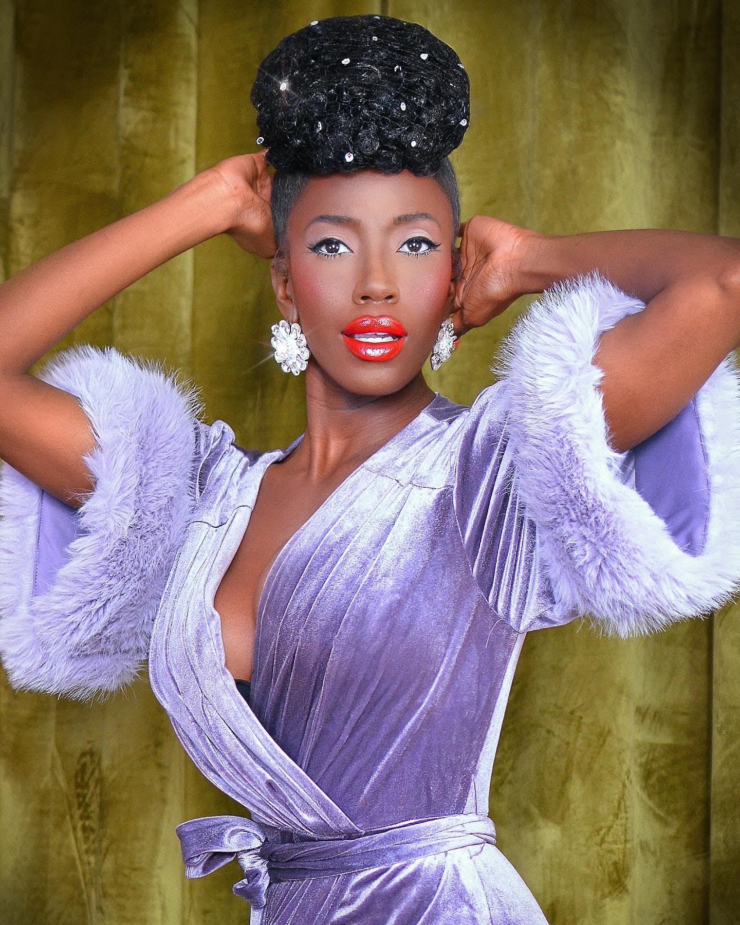 The 5th Avenue Dress in Lavender is an exquisite ode to 1940's glamour. Featuring flared sleeves with attached Faux fur, pleated V-neck bust and faux wrap skirt (fixed waistline) with sash belt. All in a curve hugging comfortable stretch velvet. This comfortable statement piece will make you feel as good as you look!