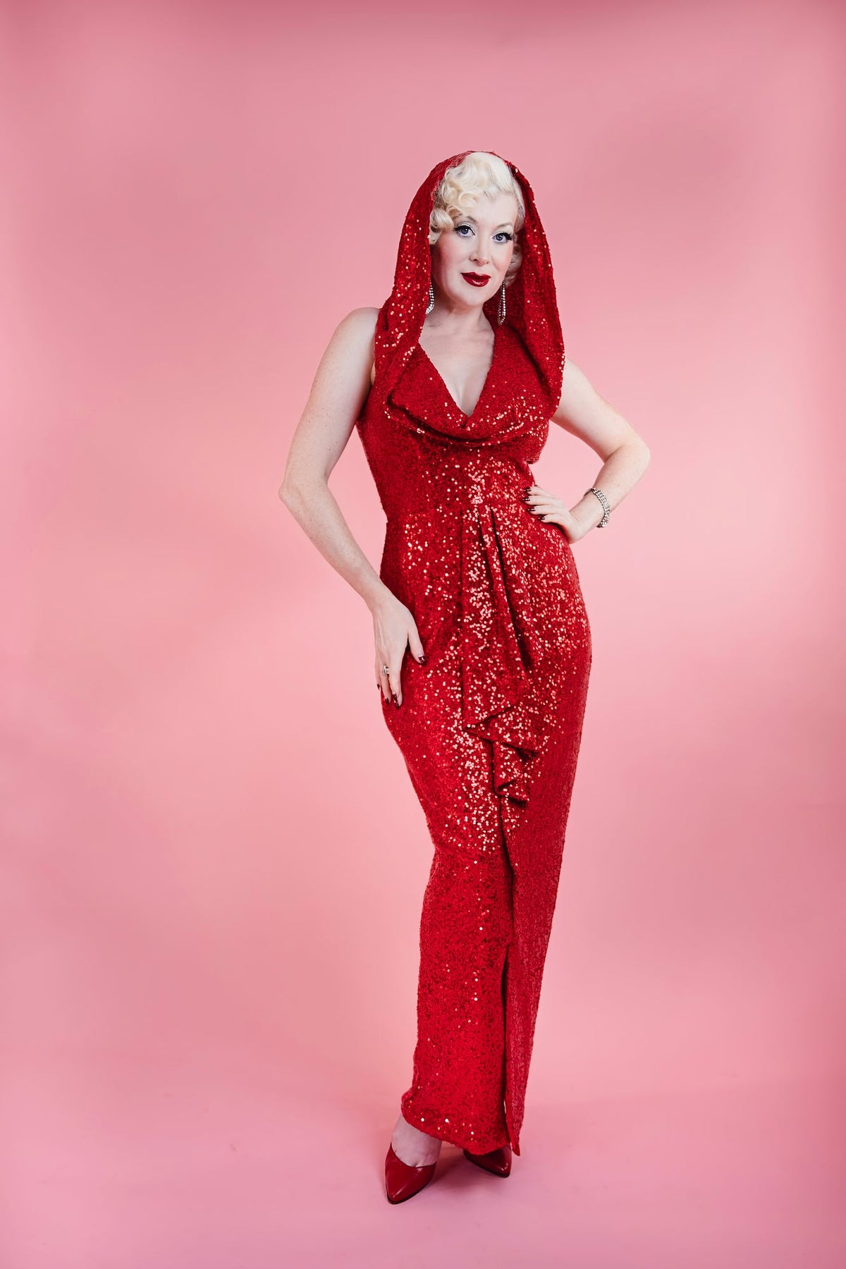 Gilded perfection is yours in this show-stopping Cairo Sunset Hooded Dress. A seductive cowl neckline cascades effortlessly, while the hood adds a hint of mystery that’s oh-so-alluring. Made from a stretchy metallic sequin blend, this dress is designed to hug your figure while shimmering under every light. Waist to hem aprox. 40-42in